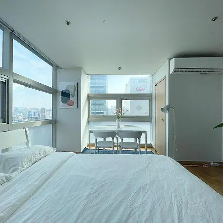 公寓地理位置非常好,距离弘益大学地铁站仅有5分钟的步行路程,距离京义线森林公园有150米。 公寓距离Palanquin Floor I Ramen 及Hansot Dosirak有不到5分钟的步行路程。 它距离汝矣岛汉江公园仅有几步之遥,靠近EXiT弘大店。
